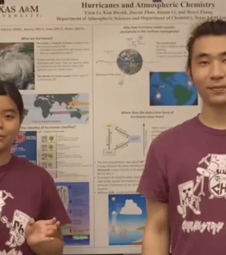 Two group members discuss our research between Hurricanes and Atmospheric Chemistry for the 2021 Chemistry Open House.